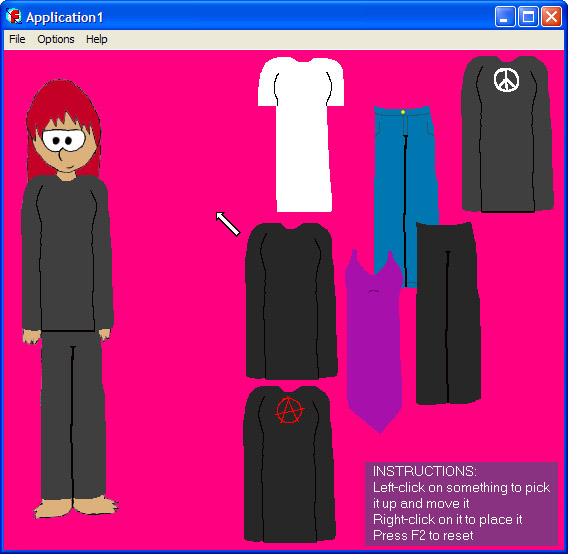 Made because some other webcomic made a dress up doll game in Flash, but I didn't know how to make Flash things, so did it with Vitalize, and crap artwork. As it trapped the user's cursor inside the game, it was annoying to use online, so I made an offline version. |