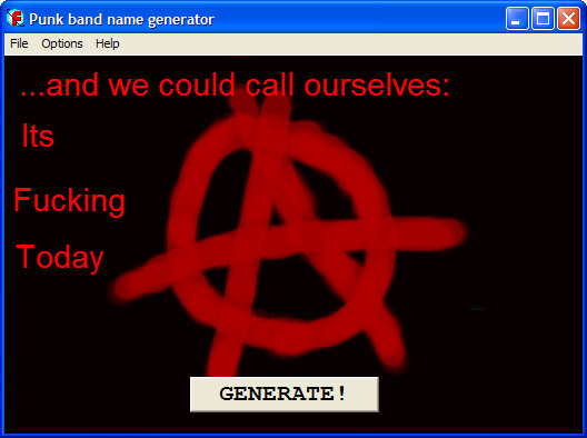 Somebody uploaded a "Death Metal Song Generator" to The Daily Click. I just had to show off how awesome I was for liking classic punk, despite being only 18, and made this. Somebody called it "badly done, and un-funny". |