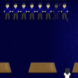 Part of a mooted "101 Offensive Games Pack", of which I made two. On the Daily Click they almost didn't allow it because the very url it was then hosted on offended them! Anyway this one is terrible ripoff of Space Invaders, except you have to flick pencils across a classroom to prevent a horde of bullies from sitting next to you during a test. |