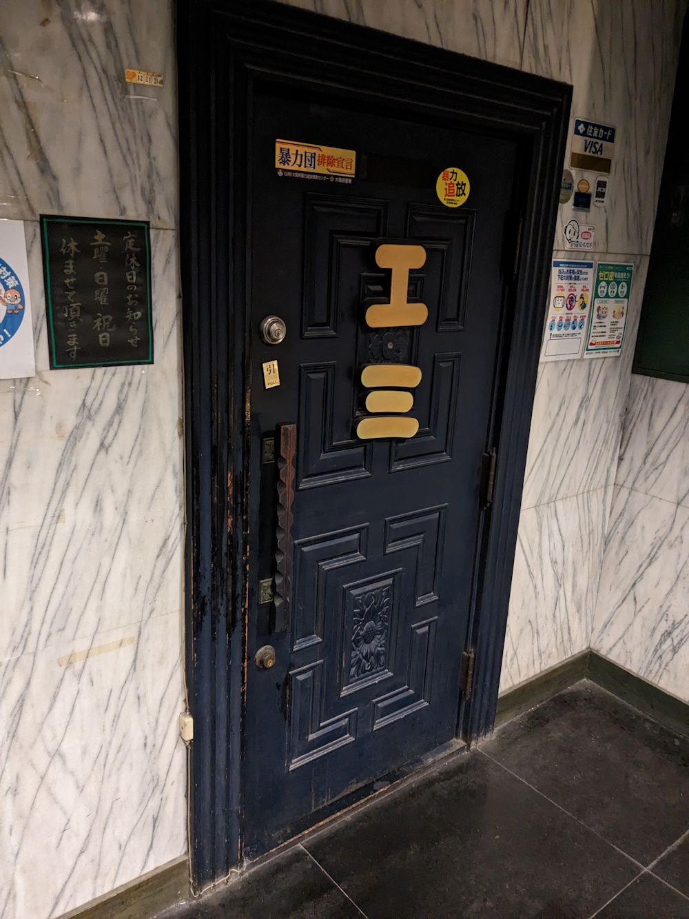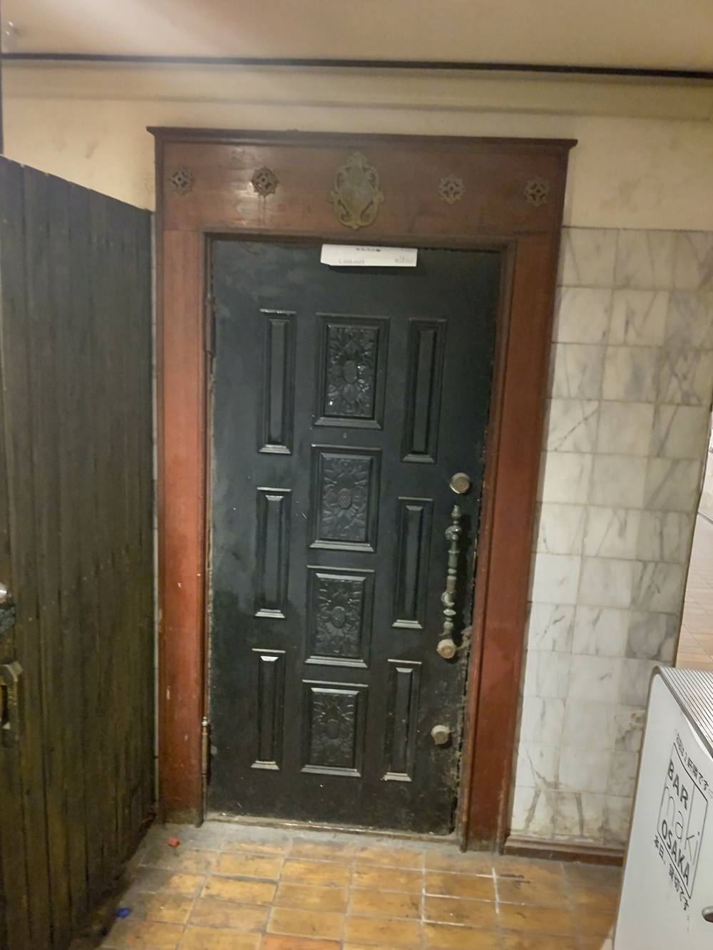 19th August 2024 This door seems like it just went into the side of Digital Cafe. Was Digicafe once two narrow units? Or maybe Digicafe's door was a later addition, and this was it's "real" door? (It would put it in line with Benitsuru and Daishoujo). There was a letter "to the tenant" stuffed in there. Maybe I should have mentioned it to Keita, eh? Or nicked it and seen how old it was, if it was still there on the last night. |