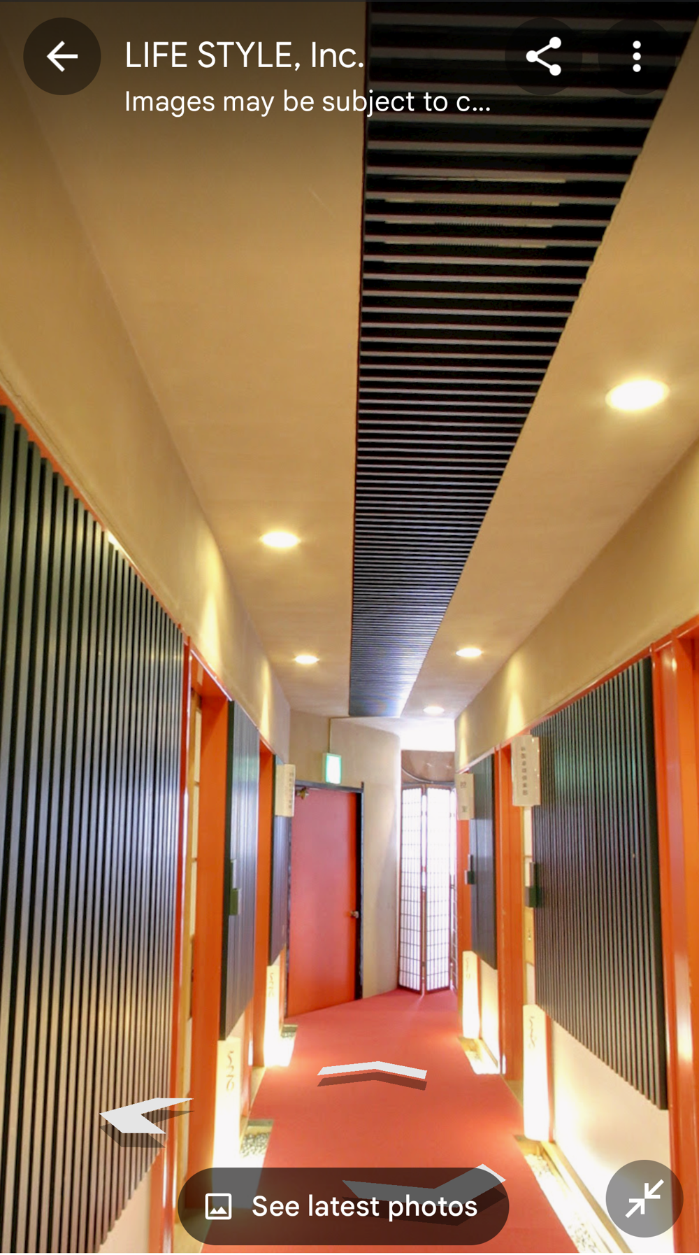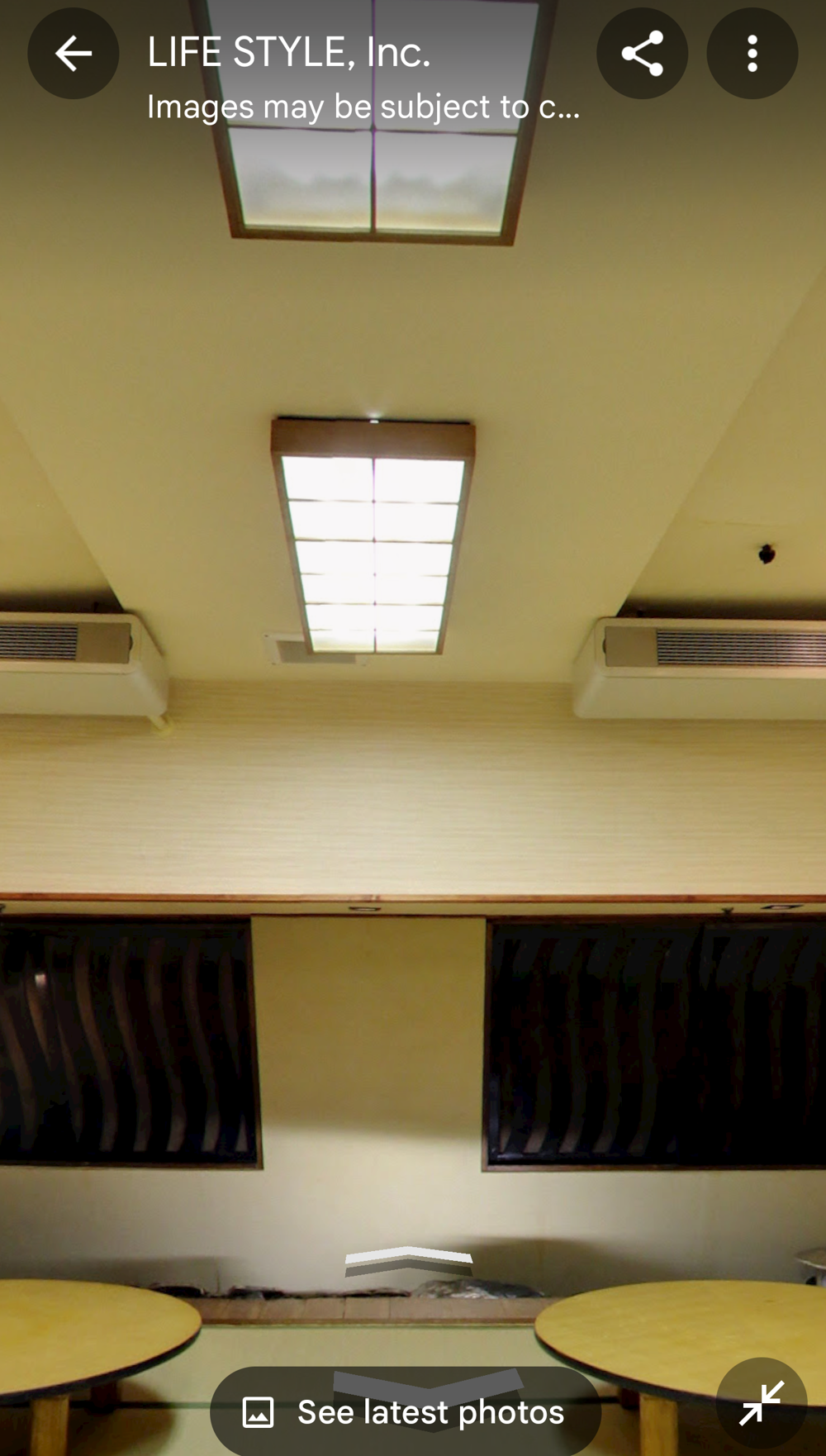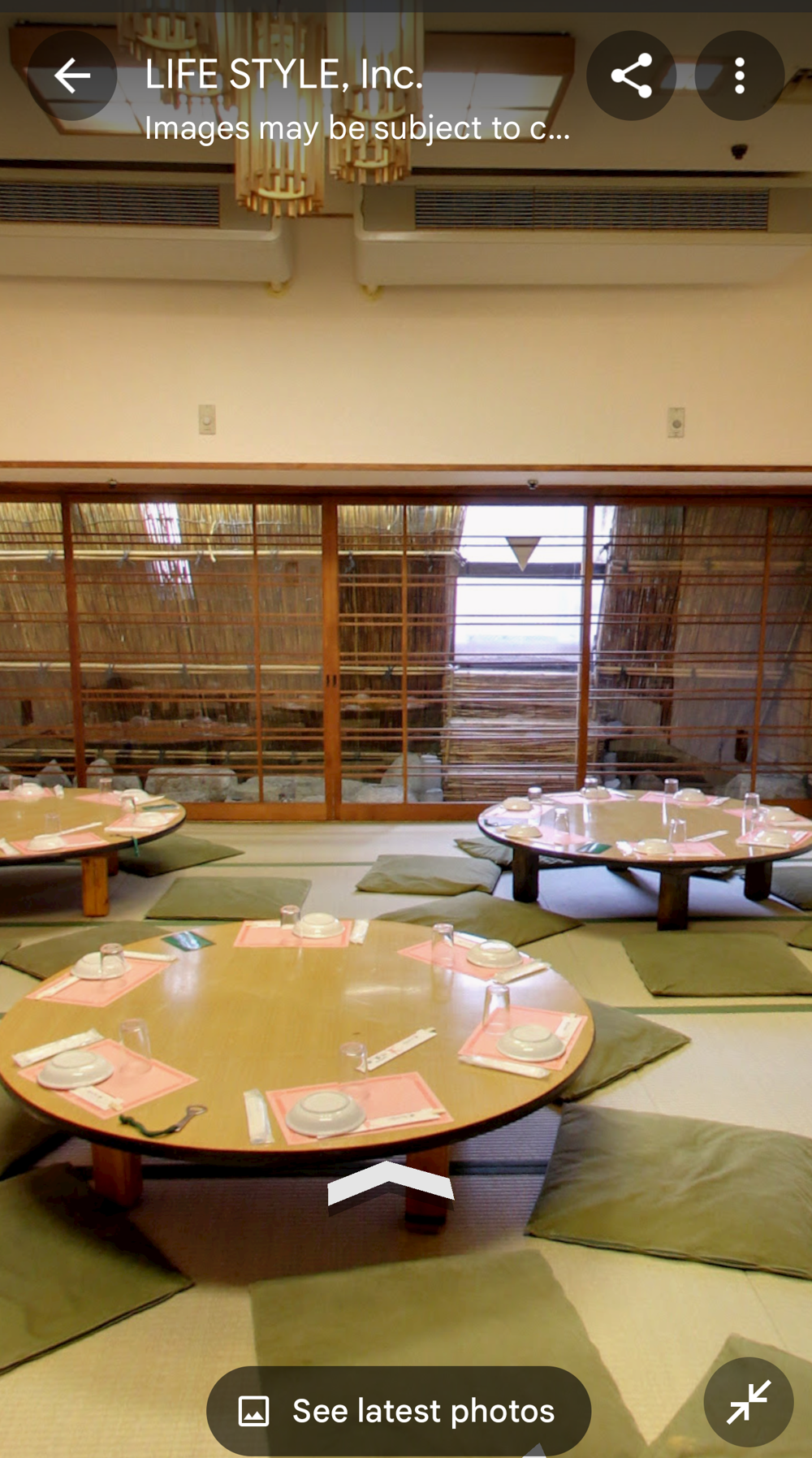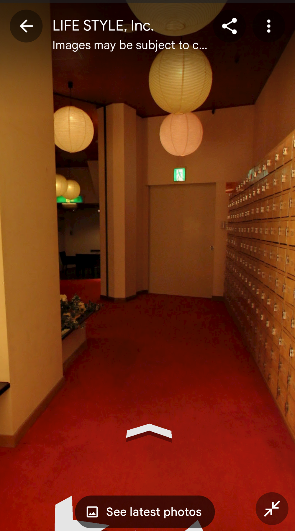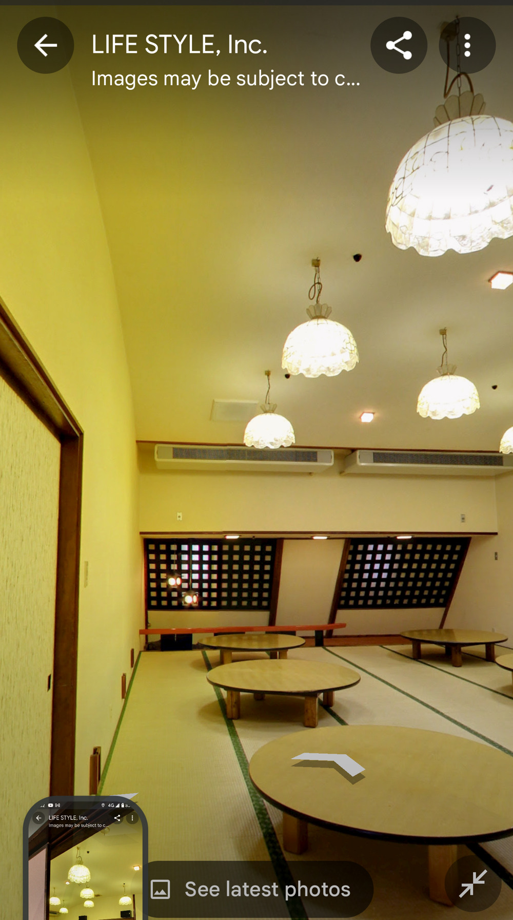 Fifth Floor This had the "banquet hall". These seem to have been a lot more common in Showa times, but I don't think many exist now (In 2015 I went to one in Tokyo with a band I'd seen, when very drunk, it was fun). Basically they're like a giant izakaya, with big circular tables that seat 10 or so people. Parties or corporate groups go there and get all-you-can-drink (nomihodai), and all-you-can-eat (tabehodai). These days those sorts of parties tend to be held in places with seperate rooms for each group, but in the old days it was all in one huge hall, so you'd all end up having a laugh with strangers around you, too! Taken from: https://brutus.jp/osaka_misonobuilding/ This section closed around the time of coronavirus. I never went, but Google Maps had an extensive tour of it. This will vanish one day, so I took an extensive number of screenshots! July 2025note: Today, if you try to access any of the Misono's internal photo-spheres, they "helpfully" redirect you to the "newest images", which are just pictures of the outside on normal streetview - so sorry, you already can't tour the hall as it was. They used to have a full walk of Motoko too, oh how I wish I'd capped that! |
