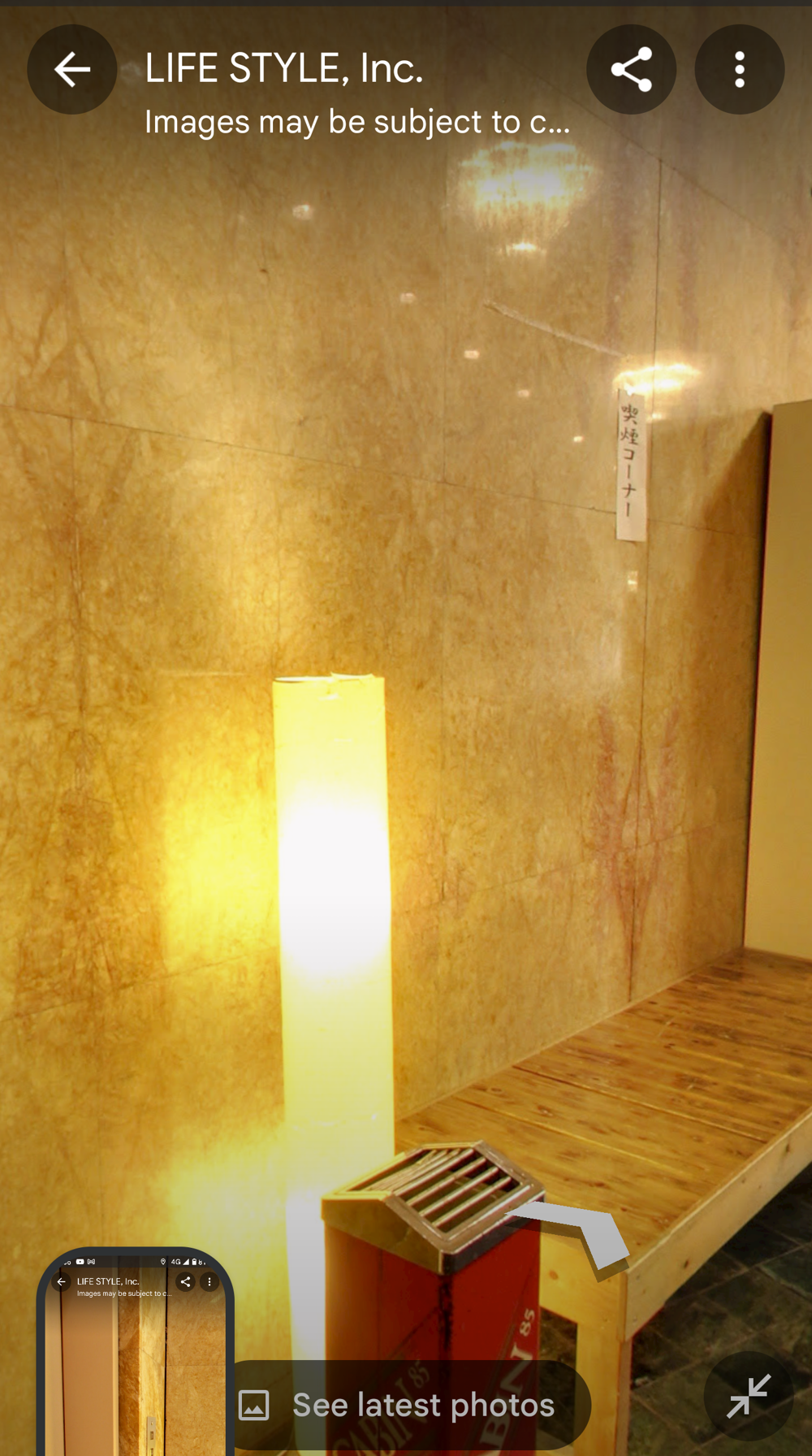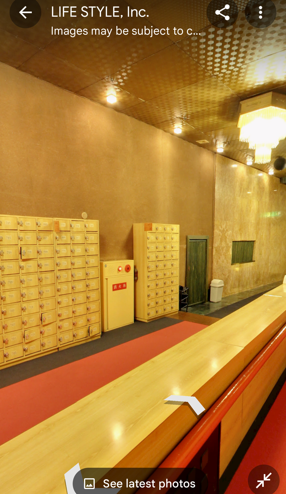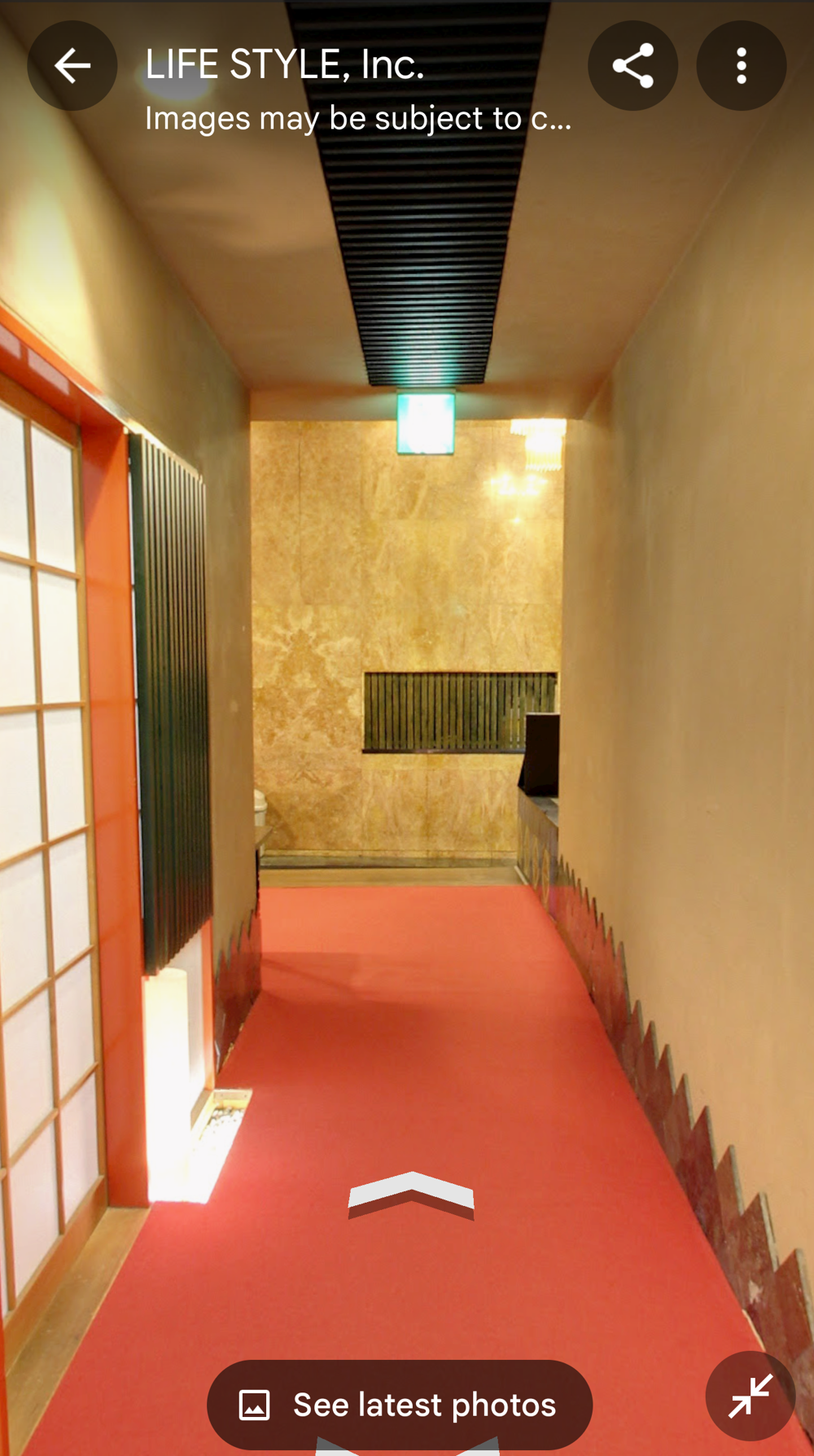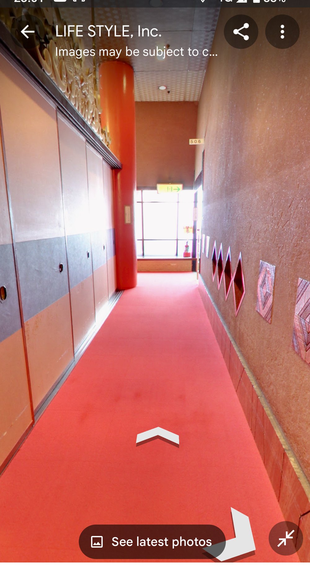 Fifth Floor This had the "banquet hall". These seem to have been a lot more common in Showa times, but I don't think many exist now (In 2015 I went to one in Tokyo with a band I'd seen, when very drunk, it was fun). Basically they're like a giant izakaya, with big circular tables that seat 10 or so people. Parties or corporate groups go there and get all-you-can-drink (nomihodai), and all-you-can-eat (tabehodai). These days those sorts of parties tend to be held in places with seperate rooms for each group, but in the old days it was all in one huge hall, so you'd all end up having a laugh with strangers around you, too! Taken from: https://brutus.jp/osaka_misonobuilding/ This section closed around the time of coronavirus. I never went, but Google Maps had an extensive tour of it. This will vanish one day, so I took an extensive number of screenshots! July 2025note: Today, if you try to access any of the Misono's internal photo-spheres, they "helpfully" redirect you to the "newest images", which are just pictures of the outside on normal streetview - so sorry, you already can't tour the hall as it was. They used to have a full walk of Motoko too, oh how I wish I'd capped that! |