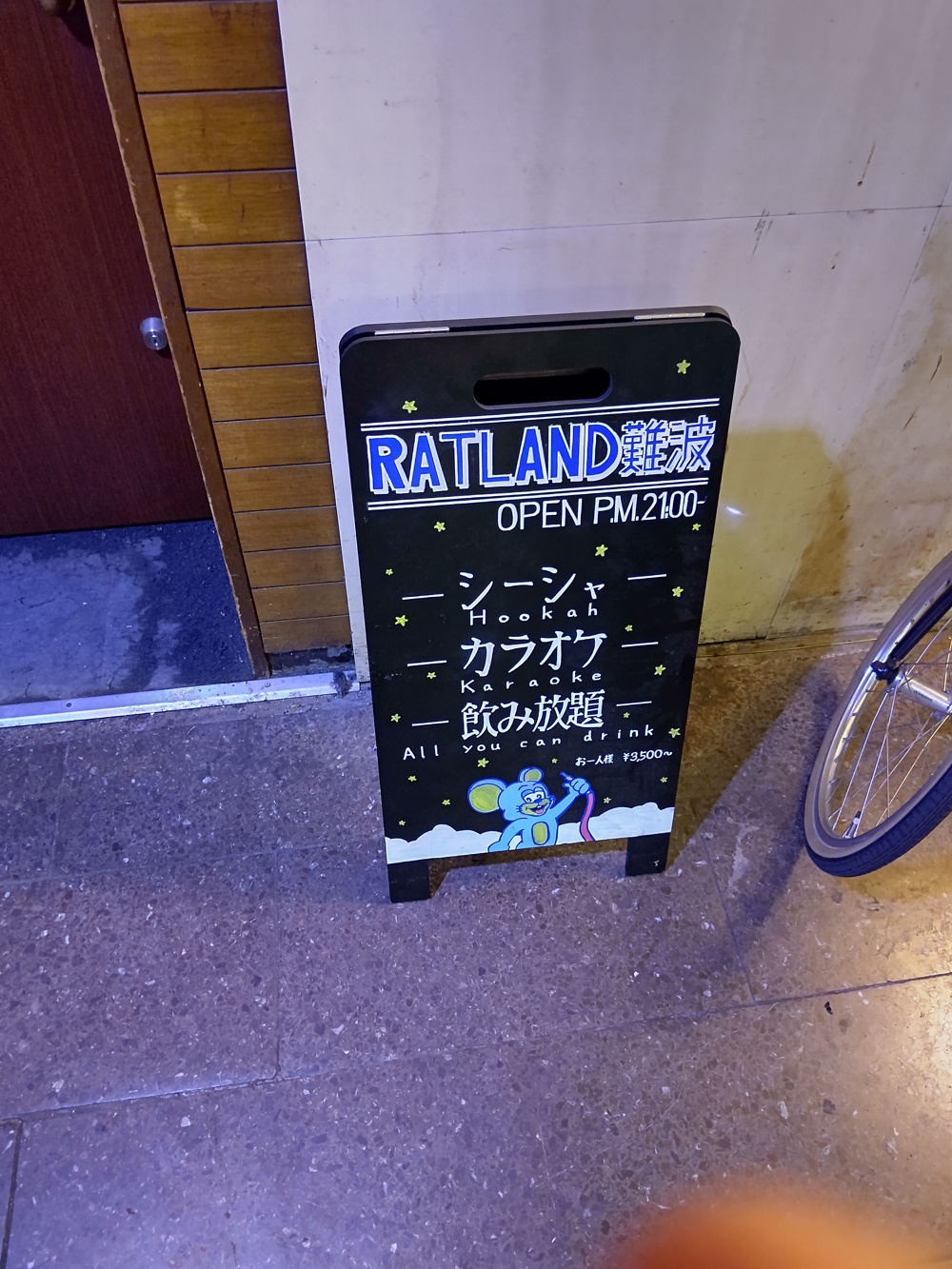 En:Counter This used to have no charge, but later instituted a ¥300 one. Still cheap! The mama spoke good English, I met the master once, he spoke good English too, but was pissed as a fart. A deceptively big place, it extended over the top of the side stairs and had the same white marble tiling as many Misono bars. First one or two times I went there, I was basically the only compos customer, the mama let me use her phone (which was the "decks", just bluetoothed into the sound system) to request anything. I played the Macc Lads! The times I went there it was kind of late, I'd been to other places first. Either way, it never seemed very busy, considering it was one of the bigger units. Away from the bar there was a few scattered tables and chairs, and an open floor with some decks in the corner. Perhaps it used to have (or they just hoped it would have) proper club nights with dancing, but they seemed to have given up on that. Some of the tiles in the floor had come out of place, but didn't look like they'd get fixed. It closed down not long after the closure announcement, they even blocked off the window in the door so there's nothing to see. Relocation: Dunno |
