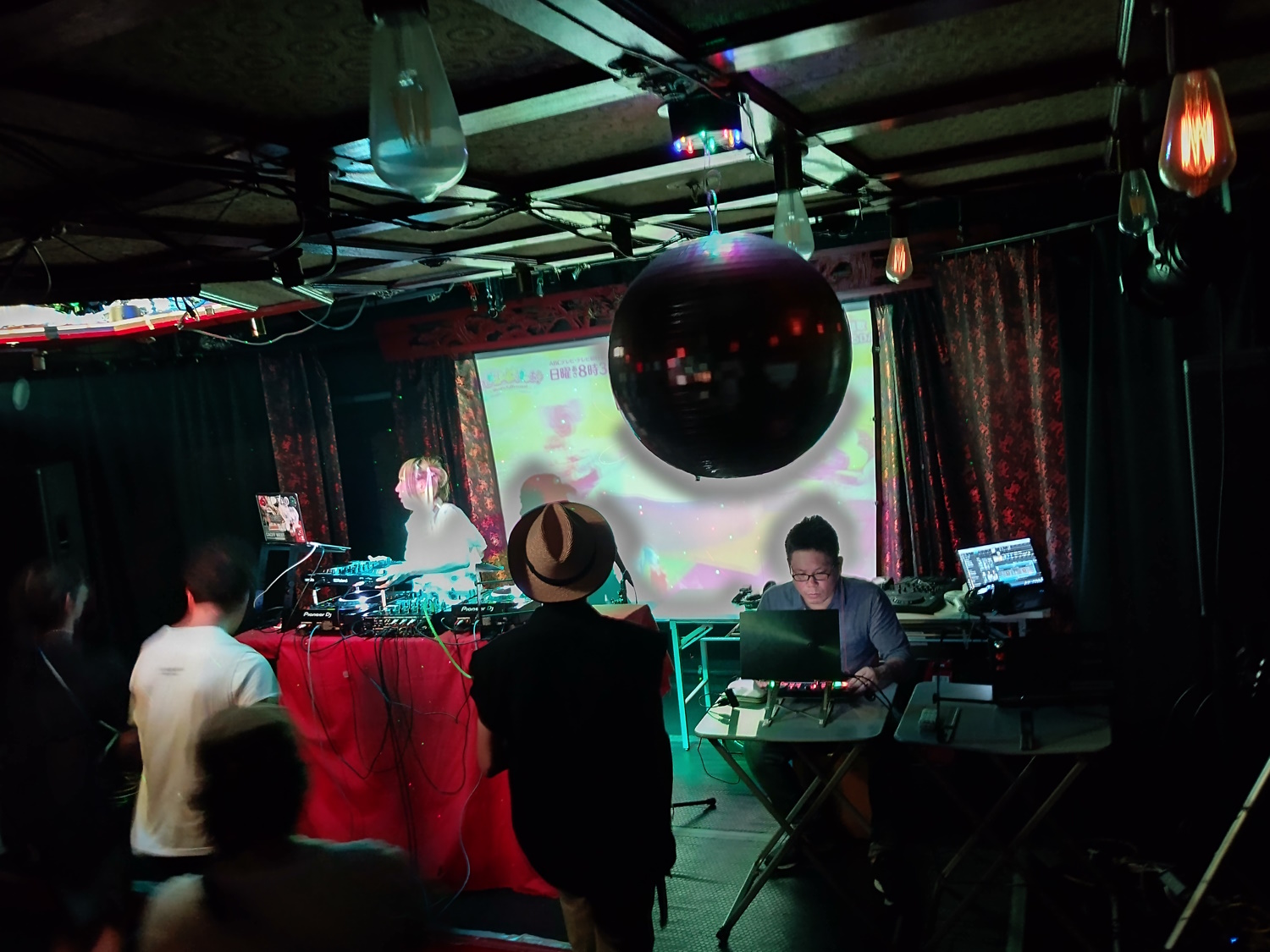 Teranoma DJ bar with big decks on the bar. It had a higher charge than most in the building, at ¥1000, so I only went, er... maybe once. Or maybe twice, but the first time I was already drunk, it was really dark inside, and a party was going on. I seem to recall that. At that time, there were some grates / bars blocking access to part of the bar. When I went again, it was opened out. I might be mixing that memory up with somewhere else! Relocation: It's moved to the top floor of a building near Den Den Town. The relocated version is called Teranoma Tidepool. It's location is not at all obvious during the day, but they put a sign out when they're open at night. |