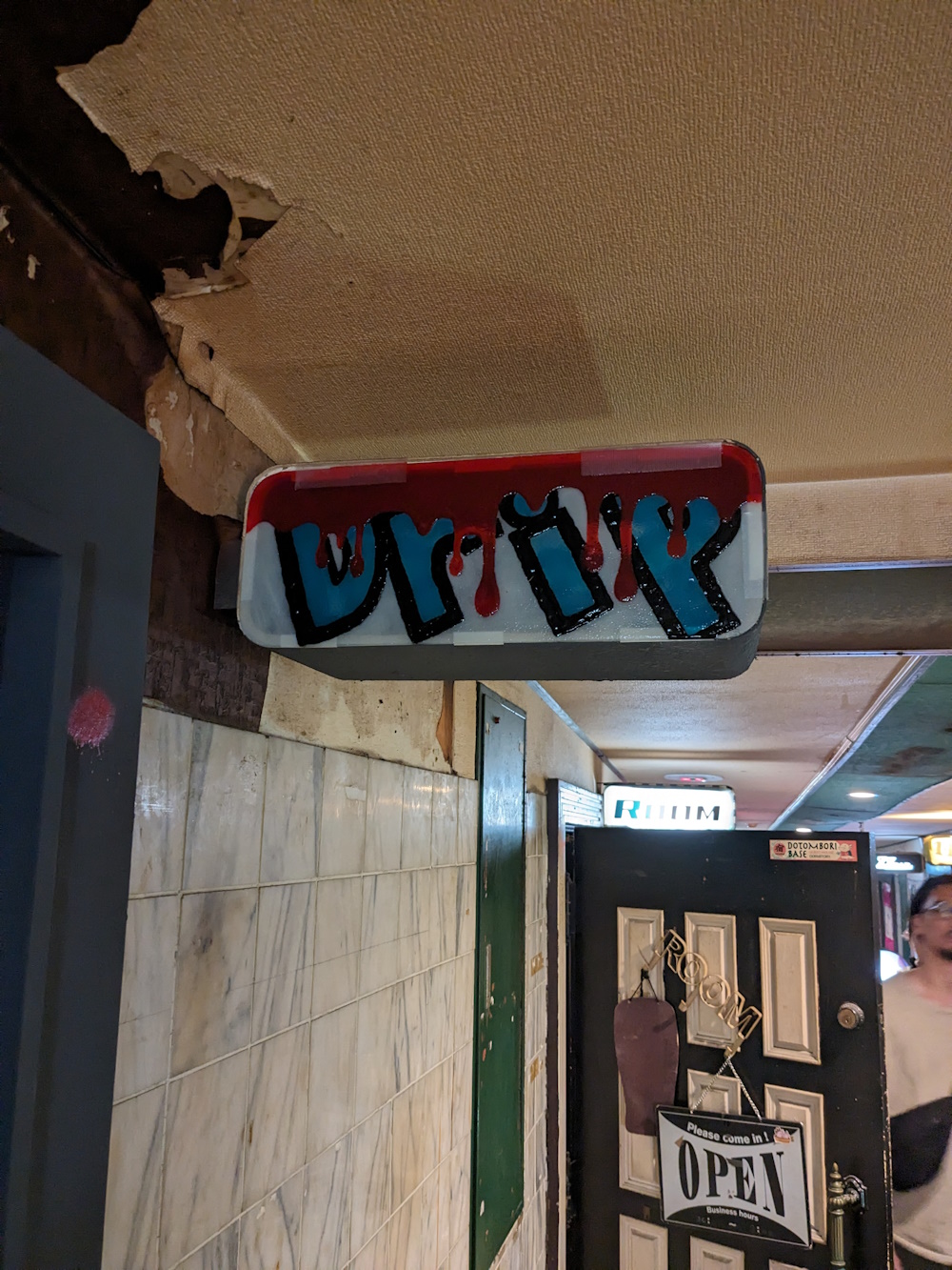 Drip: A hip-hop bar. After corona restrictions started being lifted, I went to Misono and wandered up and down, looking for a cheap bar with low or no charge. I very nearly went here just because it was cheap, even if I don't like the music. Then walked about 5 paces more and found Caoff Discovery! So that was that decision made. Drip closed down quite a long time before the building closed, the unit was just left empty. I remember it had black walls with graffiti pieces on them, the bar was at the far end, "behind" what I presume was the toilet. Relocation: Dunno, but I assume not! |