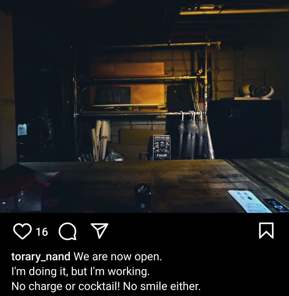 Yutori-Chan They only opened this bar in 2024! It ran for less than a year. Still, had a cool crowd, and decent prices. Before it was Yutori-chan, I beleive it was Okinawan-themed... well, they sold Orion anyway. I went to it once, just as coronavirus restrictions were being relaxed, it still had plastic partitions on the bar to isolate each person's coughs, and you had to spray your hands when you went in. But I might actually be remembering Shiizaa. |