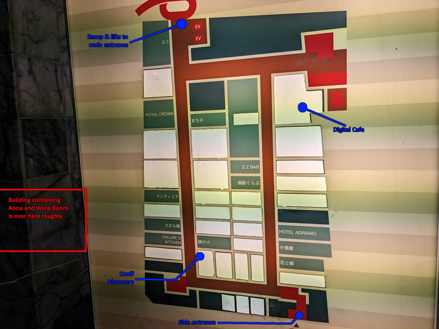 Getting There Also located in the Misono building. If you come up the looping ramp, turn left, then right at the next corner. If you come up the side entrance, turn right at the top of the stairs, and go straight.