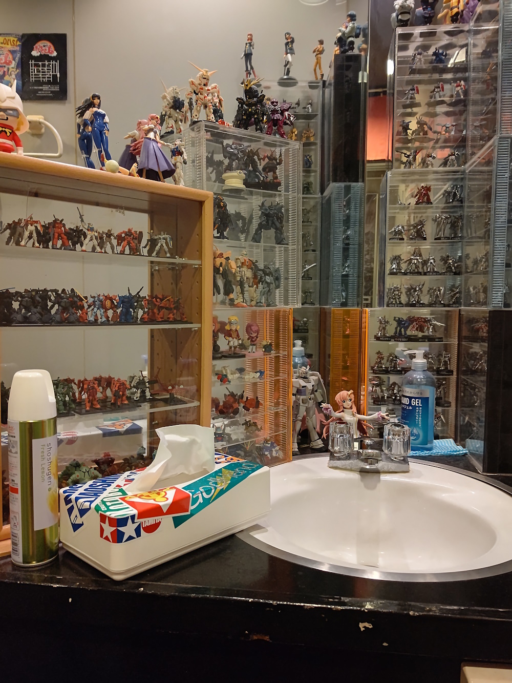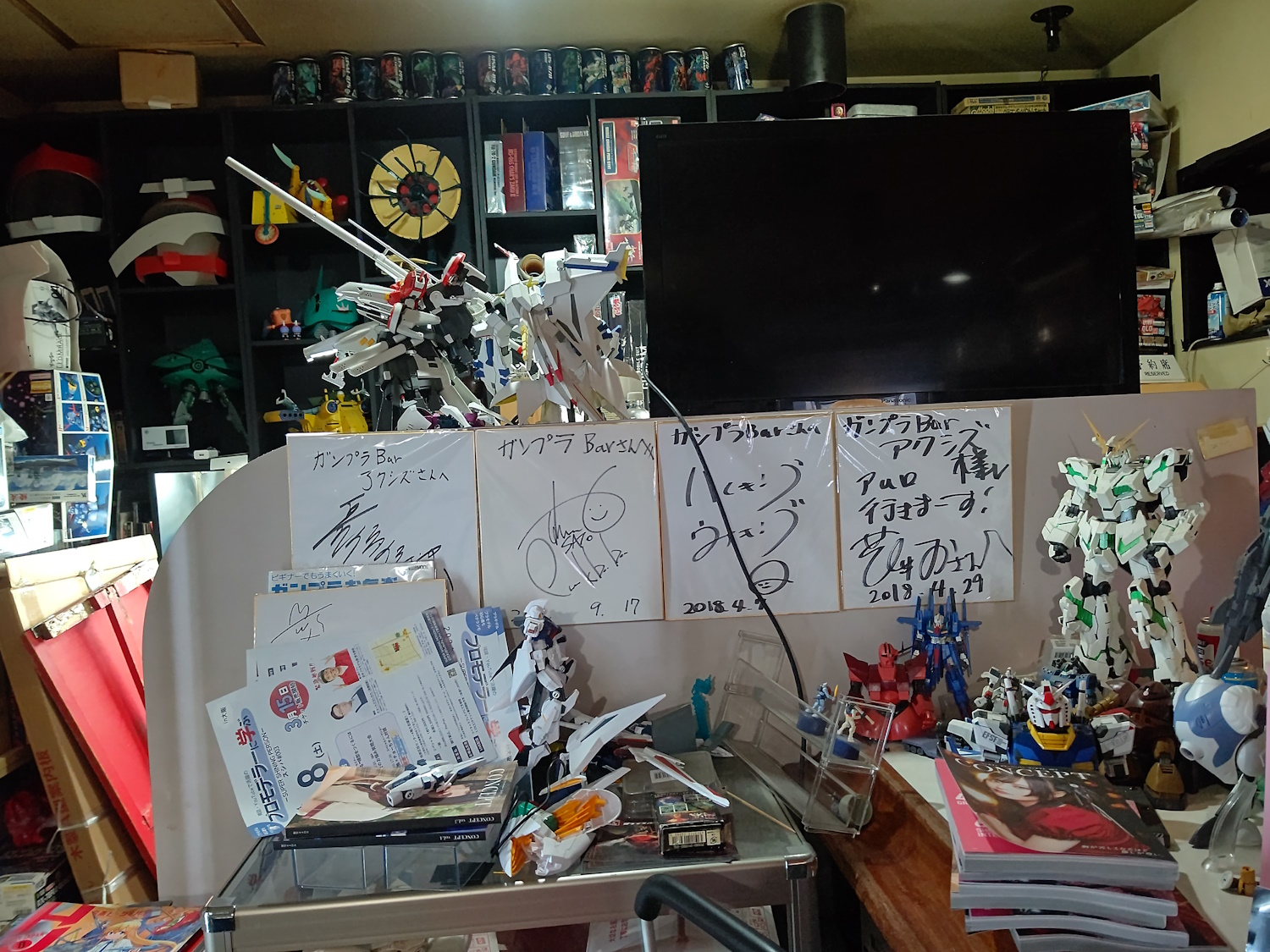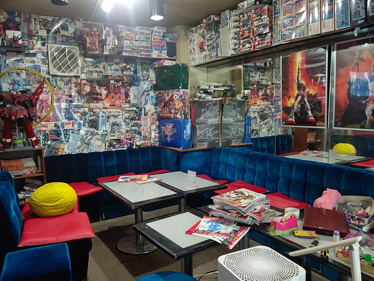 Review This is a surprisingly big place, tucked away in the back of a building down a little hallway of it's own. It's absolutely crammed with gunpla and other mecha models of all kinds. When I went it was kind of empty, just one woman was there, and she was on her way out. It looks like it's been around a long time, actually. The tables and chairs look well-used. They're also in the blue, yellow and red colours associated with "classic" Gundam, so perhaps look "older", or at least cheesier and "more 80's" than they otherwise might. The master was nice, but honestly I wasn't there that long. Also I know next to nothing about Gundam, I just told him I was on an "Otaku bar adventure" XD. The rating is preliminary. Oh, he does have stickers for Anna and Yorozuya in the bog, so knows his stuff! |