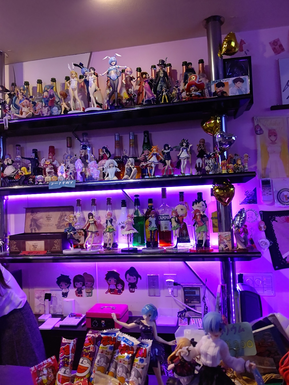 Review A bar kind of "out on it's own", near Fukaebashi subway station. It has nice seats, karaoke and loads of figures. I went on a Tuesday night, but there were still some regulars turning up, it was a pretty fun time overall. That said, the mama was pushing me to buy a drink for her, which left a bad taste in the mouth. She did look a bit like Chae Seung-Ha* from certain angles, though, so I obliged with the one. Somebody else turned up with cucumbers and daikon, and made her own bar snacks right then and there, which were then sold to the cusomers for ¥300 each. Another regular did a ton of karaoke by himself. Oh, and there's also a slot machine! In Japan you can't put money directly in those, though. I don't know if they have "tokens", or if it's just for show - a lot of the ones in the not-casinos have anime themes. They are associated with Lustier. * - If ya know, ya know! |