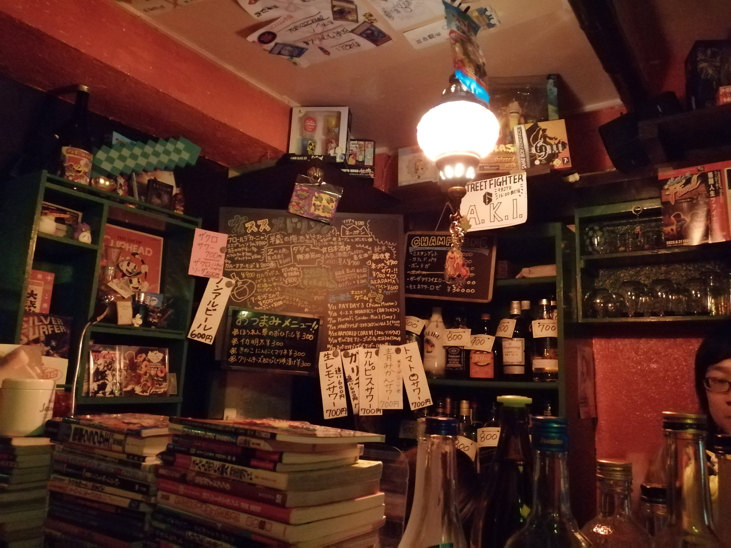 Review Primarily a gaming focused bar, with a slight focus on retro games. The main bar has bunch of guidebooks on the bar, and the upstairs area (which looks very retro, tatami floors and built-in cupboards!) has some systems set up to play with. The staff speak a fair bit of English and are interested in comics and anime too. The master knows who Ed Piskor is! The door is sliding and somewhat flimsy, take care! |