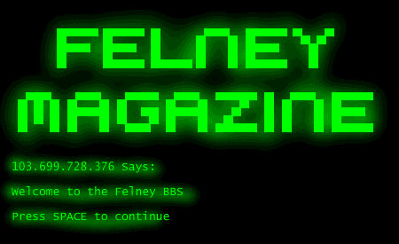 In 2003 I got nostalgic for my days of reading UK underground E-zines like SWAT and F4ITH (which I had been doing only 3-4 years earlier), so decdided to create my own one! SWAT and F4ITH (and UP, APT, AntiSocial, ANTI etc) were themselves inspired by even older text file E-zines like PHRACK and PHUK, which had been distributed on the proto-internet BBS systems. Having a "nice" web-host, I couldn't fill my own Felney Magazine (FM?) with instructions for hacking, phreaking and "anarchy" (making bombs), so it's mostly just any random thoughts I had at the time. I started to make another issue around November 2020, but never finished it. Perhaps I'll continue this one day. |